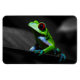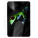 Very cool black and white photograph of a green tree frog with big red eyes.