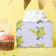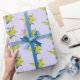 A cute red eyed tree frog sitting on three leaves against a backdrop of light purple