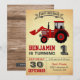 Red Farm Tractor First Birthday Party Invitation