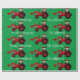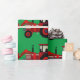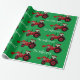 Red Farm Tractors on Green Christmas Wrapping Pape Paper