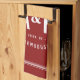 Farmhouse holiday kitchen towel personalised with your family name, monogram initials, city and established date in a trendy logo crest. Use the design tools to choose any background colour, edit the text fonts and colours or upload your own photos to create a one of a kind design. The perfect touch for your modern farmhouse kitchen decor!