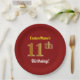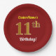 Red, Faux Gold 11th Birthday + Custom Name Paper Plate