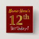 Red, Faux Gold 12th Birthday, With Custom Name 15 Cm Square Badge