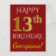 Red, Faux Gold 13th Birthday + Custom Name Postcard