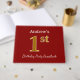Red, Faux Gold 1st Birthday Party + Custom Name Guest Book