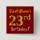Red, Faux Gold 23rd Birthday, With Custom Name 15 Cm Square Badge