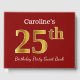 This guest book design features the ordinal number "25th" with a faux gold-like appearance. It also features a personalised name, and a red coloured background. It could be used at a party for somebody celebrating their twenty fifth birthday. [~Z0000055]