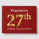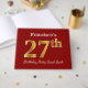 This guest book design features the ordinal number "27th" with a faux/imitation gold-like appearance. It also features a personalised name, and a red coloured background. It could be used at a party for somebody celebrating their twenty seventh birthday. [~Z0000055]