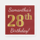 Red, Faux Gold 28th Birthday + Custom Name Napkin
