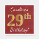 Red, Faux Gold 29th Birthday + Custom Name Napkin