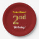 Red, Faux Gold 2nd Birthday + Custom Name Paper Plate