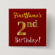 Red, Faux Gold 2nd Birthday, With Custom Name 15 Cm Square Badge