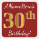 Red, Faux Gold 30th Birthday + Custom Name Sticker