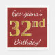 Red, Faux Gold 32nd Birthday + Custom Name Napkin