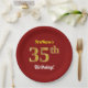 Red, Faux Gold 35th Birthday + Custom Name Paper Plate