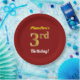 Red, Faux Gold 3rd Birthday + Custom Name Paper Plate