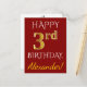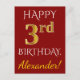Red, Faux Gold 3rd Birthday + Custom Name Postcard