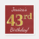 Red, Faux Gold 43rd Birthday + Custom Name Napkin
