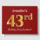 This guest book design features the ordinal number "43rd" with a faux/imitation gold-like appearance. It also features a personalised name, and a red coloured background. It could be used at a party for somebody celebrating their forty third birthday. [~Z0000055]