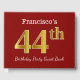This guest book design features the ordinal number "44th" with a faux/imitation gold-like appearance. It also features a custom name, and a red coloured background. It could be used at a party for somebody celebrating their forty fourth birthday. [~Z0000055]