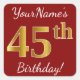 Red, Faux Gold 45th Birthday + Custom Name Sticker
