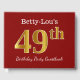 This guest book design features the ordinal number "49th" with a faux/imitation gold-like appearance. It also features a customised name, and a red coloured background. It could be used at a party for somebody celebrating their forty ninth birthday. [~Z0000055]