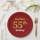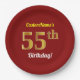 Red, Faux Gold 55th Birthday + Custom Name Paper Plate