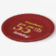 This simple, personalised, birthday-themed paper plate design features a customisable message like "CustomName’s 55th Birthday!", where the name can be changed, and with the "55th" having a faux/imitation gold-like appearance. It also features a red coloured background. Paper plates like these could perhaps be used at a party being held to celebrate somebody’s fifty fifth birthday. [~Z0000144]
