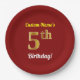 Red, Faux Gold 5th Birthday + Custom Name Paper Plate
