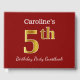This guest book design features the ordinal number "5th" with a faux gold-like appearance. It also features a custom name, and a red coloured background. It could be used at a party for somebody celebrating their fifth birthday. [~Z0000055]