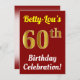 This birthday party invitation design features a message like "Betty-Lou’s 60th Birthday Celebration!", where the name can be personalised, and where the number "60th" has a faux gold-like appearance. It also features a red coloured background. The event details on the back can be personalised. It could be used to invite people to somebody’s sixtieth birthday celebration or birthday party. [~Z0000120]