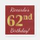Red, Faux Gold 62nd Birthday + Custom Name Napkin