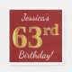 This simple paper napkin design features a message like "Jessica’s 63rd Birthday!", with the "63rd" having a faux gold-like appearance, on a red coloured background. The name can be customised. It could be used at a birthday party for somebody who is celebrating their sixty third birthday. [~Z0000080]