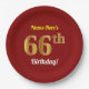 Red, Faux Gold 66th Birthday + Custom Name Paper Plate