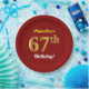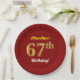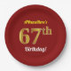 Red, Faux Gold 67th Birthday + Custom Name Paper Plate