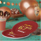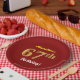 This simple, customisable, birthday-themed paper plate design features a customisable message like "ANameHere’s 67th Birthday!", where the name can be changed, and with the "67th" having a faux/imitation gold-like appearance. It also features a red coloured background. Paper plates like these could perhaps be used at a party being held to celebrate somebody’s sixty seventh birthday. [~Z0000144]