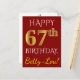 Red, Faux Gold 67th Birthday + Custom Name Postcard