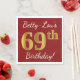 This simple paper napkin design features a message like "Betty-Lou’s 69th Birthday!", with the "69th" having a faux gold-like appearance, on a red coloured background. The name can be personalised. It could be used at a birthday party for somebody who is celebrating their sixty ninth birthday. [~Z0000080]