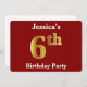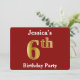 Red, Faux Gold 6th Birthday Party + Custom Name Invitation