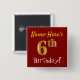 Red, Faux Gold 6th Birthday, With Custom Name 15 Cm Square Badge