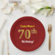 Red, Faux Gold 70th Birthday + Custom Name Paper Plate