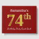 This guest book design features the ordinal number "74th" with a faux/imitation gold-like appearance. It also features a personalised name, and a red coloured background. It could be used at a party for somebody celebrating their seventy fourth birthday. [~Z0000055]