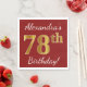 This simple paper napkin design features a message like "Alexandra’s 78th Birthday!", with the "78th" having a faux gold-like appearance, on a red coloured background. The name can be personalised. It could be used at a birthday party for somebody who is celebrating their seventy eighth birthday. [~Z0000080]