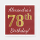 Red, Faux Gold 78th Birthday + Custom Name Napkin
