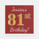 Red, Faux Gold 81st Birthday + Custom Name Napkin