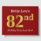 This guest book design features the ordinal number "82nd" with a faux/imitation gold-like appearance. It also features a customised name, and a red coloured background. It could be used at a party for somebody celebrating their eighty second birthday. [~Z0000055]