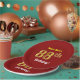 This simple, personalised, birthday-themed paper plate design features a customisable message like "Name-Here’s 88th Birthday!", where the name can be changed, and with the "88th" having a faux/imitation gold-like appearance. It also features a red coloured background. Paper plates like these could perhaps be used at a party being held to celebrate somebody’s eighty eighth birthday. [~Z0000144]