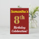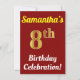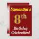 Red, Faux Gold 8th Birthday Celebration + Name Invitation