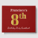 This guest book design features the ordinal number "8th" with a faux gold-like appearance. It also features a custom name, and a red coloured background. It could be used at a party for somebody celebrating their eighth birthday. [~Z0000055]
