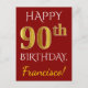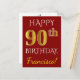 Red, Faux Gold 90th Birthday + Custom Name Postcard